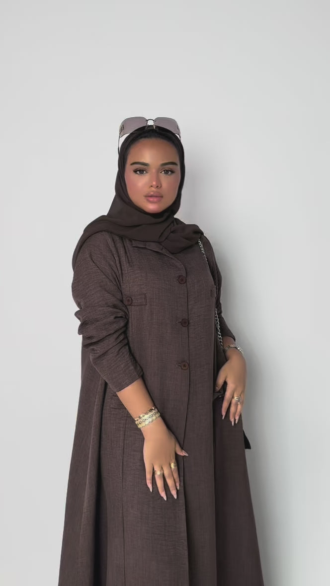 عباية صيفية بلون بني أنيق مبطنة بالكامل العباية مع ملفع .يمكن تغير اللون للأسود .