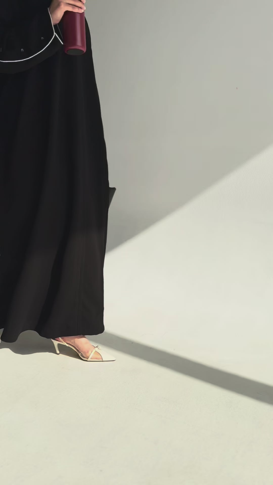 عباية واسعة ، بكمّ ضيق وأزرار مطرّزة قماش كريب فاخر حصري سواد فاحم كسرات امام والخلف متوفرة بالأبيض ويمكن تغييرالتطريز للأسود حسب الطلب .